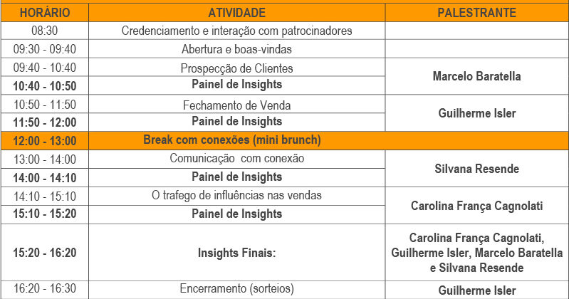 Durante um dia inteiro em Ribeirão Preto, você terá acesso a estratégias de prospecção, fechamento, liderança, comportamento do consumidor e comunicação de alta conversão. Conteúdos aplicáveis, sem enrolação, que você pode colocar em prática já no dia seguinte.